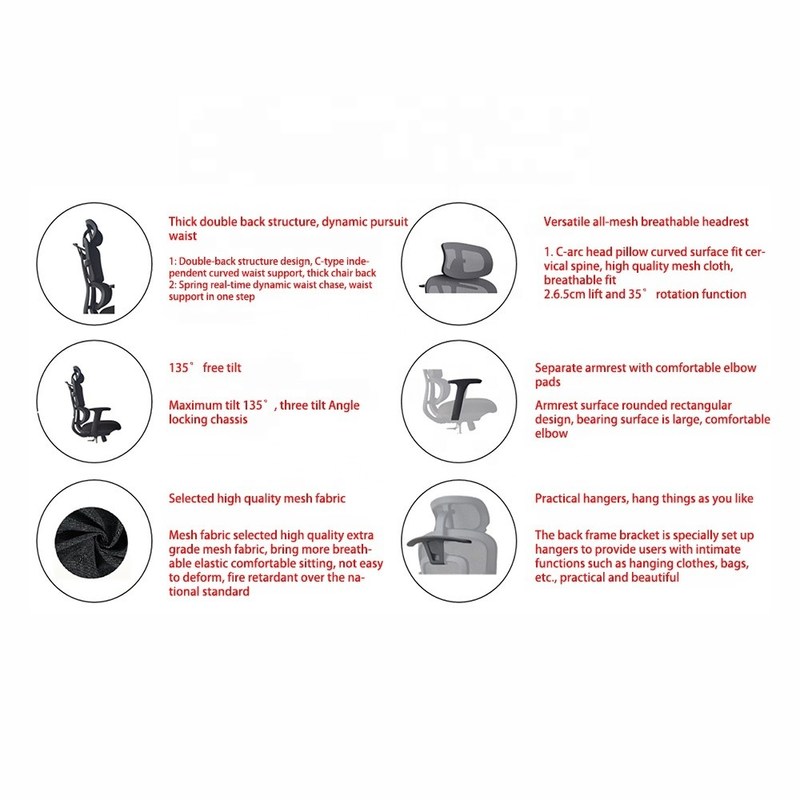 Ukuran kursi: 640*650*980-1080mm | Kain mesh berkualitas tinggi | |